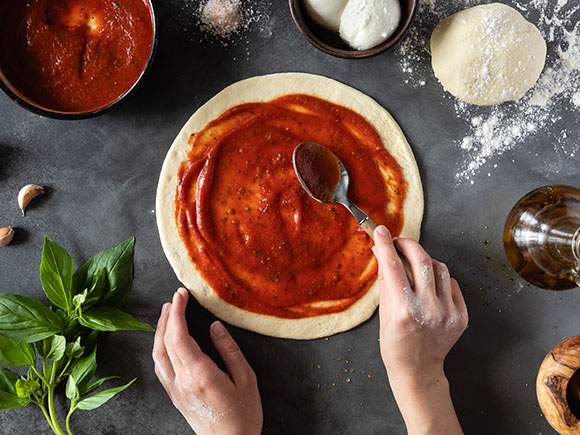 Solution: Keep the sauce at room temperature before applying. This helps the pizza bake evenly and avoids doughy spots.
